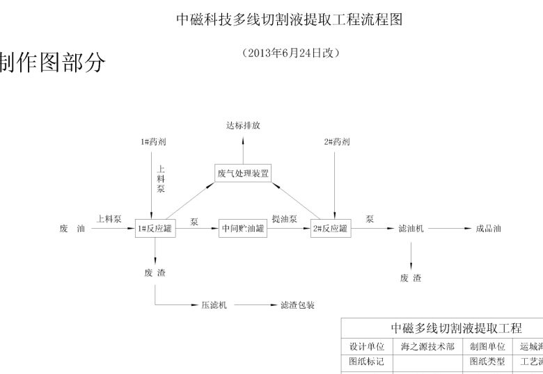 在實(shí)驗(yàn)室成功的基礎(chǔ)上,我公司設(shè)計(jì)了一套多線切割液提取工藝,對廢液中的多線切割液進(jìn)行回收再利用。
